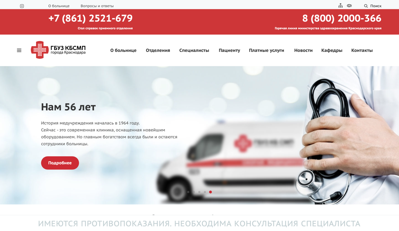 Сайт для Больницы скорой медицинской помощи Краснодара. ГБУЗ "Клиническая больница скорой медицинской помощи"
